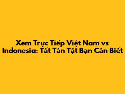 Xem Trực Tiếp Việt Nam Vs Indonesia: Cập Nhật Mới Nhất